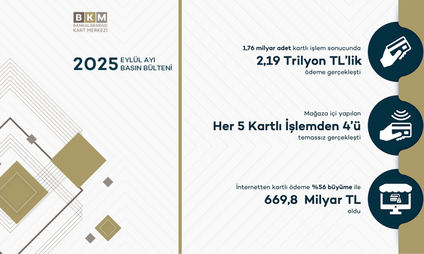 Bankalararası Kart Merkezi (BKM), 2025 yılı Eylül ayı kartlı ödeme verilerini açıkladı. Eylül ayında toplam 2,19 trilyon TL tutarında 1,76 milyar adet kartlı ödeme yapıldı.