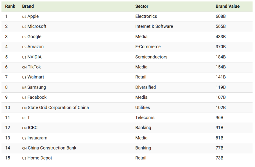 Öte yandan Çin markaları da listede güçlü bir varlık göstermeyi sürdürüyor. Özellikle TikTok, 154 milyar dolarlık marka değeriyle listenin 6. sırasında yer alarak 2026 itibarıyla en yüksek sıralamaya sahip Çin markası konumunda.