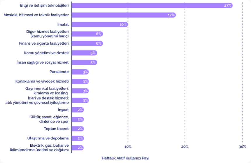 Kurumsal kullanım sektörler arasında belirgin farklılıklar gösteriyor.