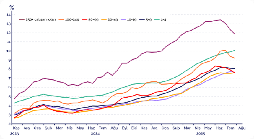 - Düşük: Perakende, inşaat, taşımacılık, toptan ticaret (%2–3).