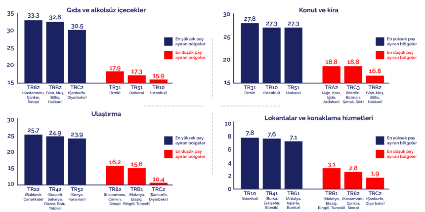 Bölgeler hangi tüketim kalemine ne kadar pay ayırıyor?