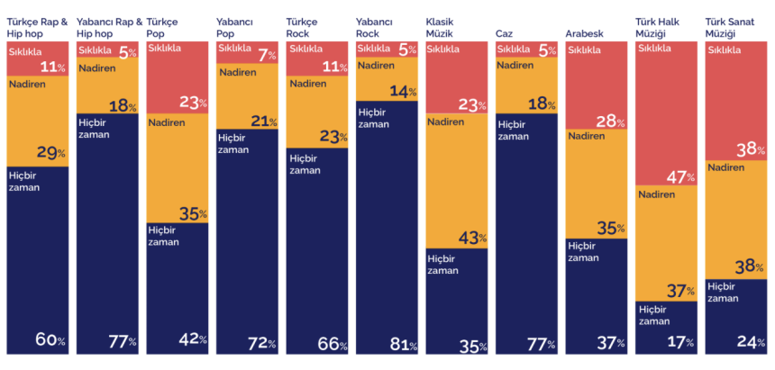 Hangi müzik türleri ne sıklıkla dinleniyor?