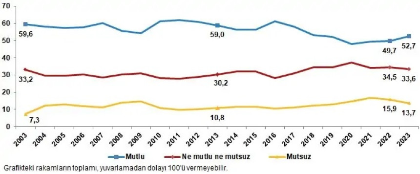Araştırmaya göre, Türkiye’nin yüzde 52,7’si mutlu olduğunu belirtti. Bu oran, önceki yıla...
