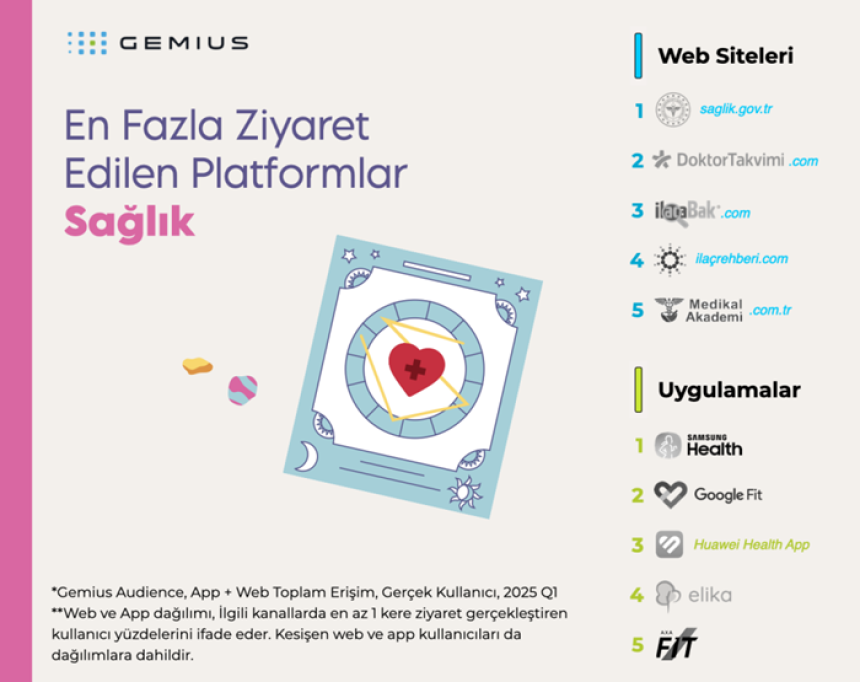 Toplumun nabzı “saglik.gov.tr”de ve “Samsung Health”te atıyorSağlık kategorisi altında incelediğimizde en çok ziyaretçi çeken web sitesinin saglik.gov.tr olduğu görülüyor. Bu elbette sürpriz değil. Kullanıcıların sağlıklarıyla ilgili verileri izleyebildiği mobil uygulamalara baktığımızda ise burada Samsung Health ipi göğüsleyen isim oldu.