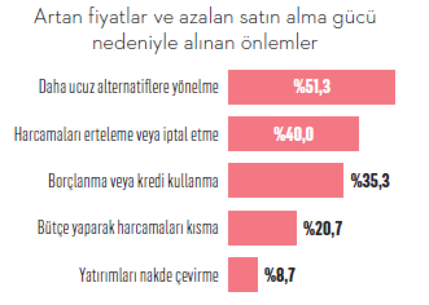 Yüzde 35,3’lük kesim, ekonomik zorluklar karşısında borçlanma veya kredi kullanmayı bir çözüm olarak görüyor. Bu da bireylerin ekonomik zorluklara rağmen hayat standartlarını korumaya çalıştığını ancak bunun uzun vadede finansal riskler taşıyabileceğini gösteriyor. Artan borç yükü, gelecekte hane halkı bütçelerinde daha büyük sorunlar doğurabilir.