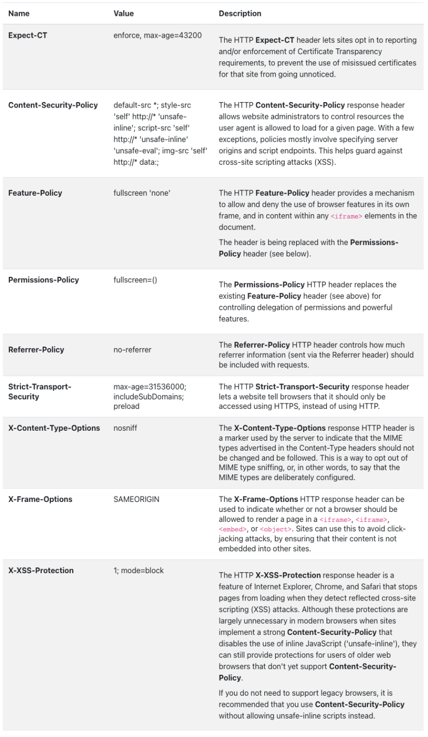NOTE: Some of the headers may not be supported on the web browsers that your employees and customers use. Check out the compatibility before the implementation.