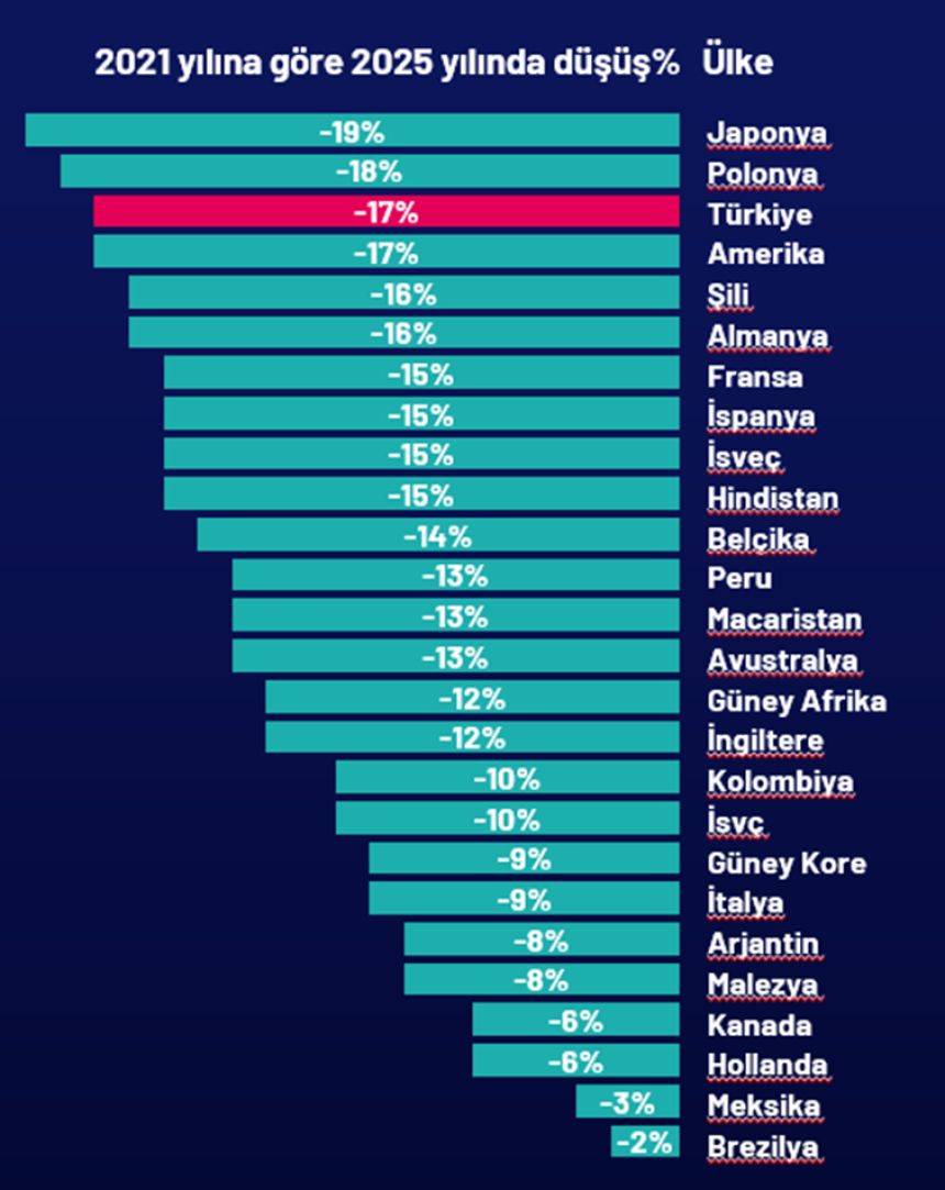 Ancak paradoksal bir şekilde, bireysel eyleme geçme konusunda düşüş yaşanıyor. Türkiye’de iklim değişikliğiyle mücadele için daha fazla adım atılması gerektiğini düşünenlerin oranı yüzde 70 seviyesindeyken, bireysel aksiyon alınması gerektiğini düşünenlerin oranı son dört yılda 17 puan azalmış durumda.