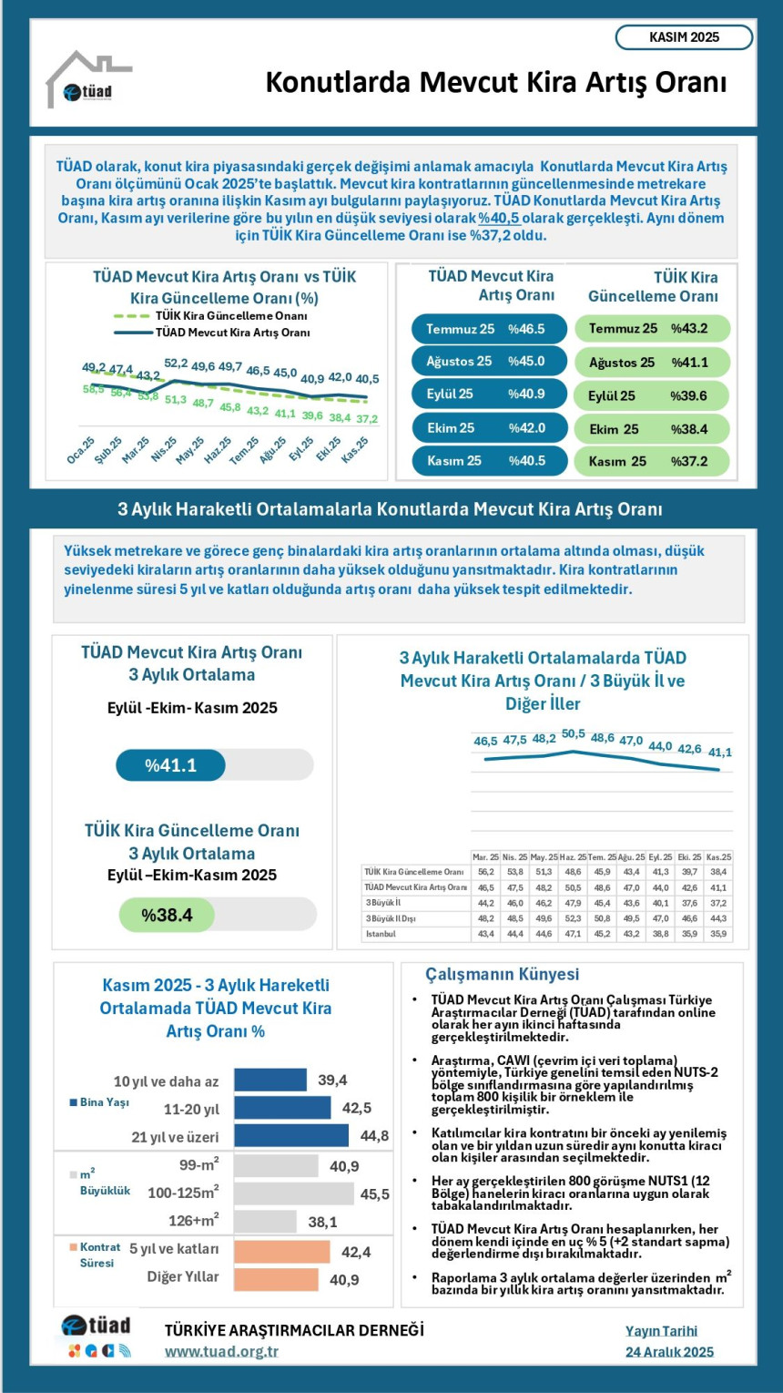 Kaynak: TÜAD – Konutlarda Mevcut Kira Artış Oranı, Kasım 2025