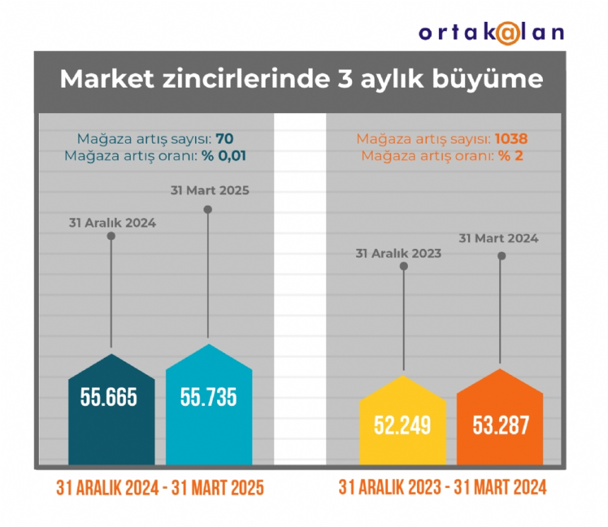 Market araştırmalarını hazırlayan Ortakalan’ın Genel Yayın Yönetmeni Emre Durdu, 2025 ilk çeyreğinde ölçülen binde 1 oranındaki mağaza artışının, organize gıda perakendeciliğinde fiziksel değişimi ölçmeye başladıkları 2009 yılından bugüne kaydettikleri en düşük ilk çeyrek büyüme performansı olduğunu belirtti.