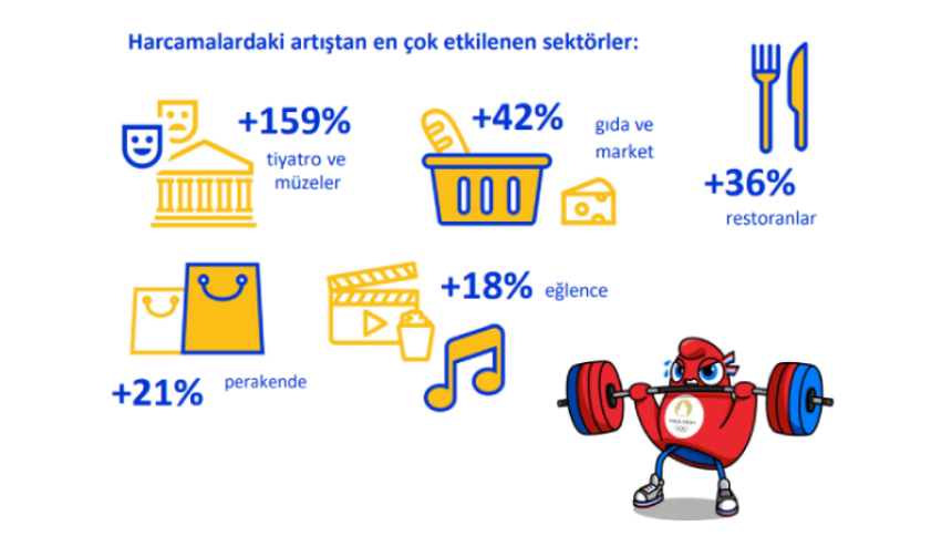 Visa’nın yayınladığı veriler Paris’te gerçekleşen Olimpiyat Oyunları’nın, şehrin ekonomisini pozitif etkilediğini ortaya koyuyor. Buna göre;