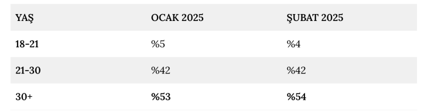 Şubat ayında toplam oyun alışverişlerinin önemli bir kısmı 30 yaş üstündeki oyuncular tarafından yapıldı.