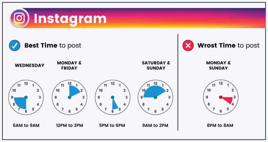 Hafta içi paylaşım programınızı Instagram'ın kalp atışına göre ayarlayın. Aradaki spot ışığını hedefleyin 6-9, 12-2 ve 5-6. Bu pencereler sabah ritüellerinde, öğle yemeği molalarında ve iş sonrası dinlenme seanslarında izleyicinin dikkatini çekiyor. Hafta sonları da benzer bir ritim izliyor; 9 PM 2 AM hem cumartesi hem de pazar günü.