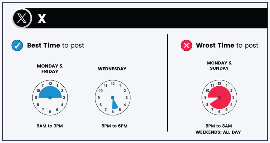 Hafta içi önemli pencereler ortaya çıkıyor: Salı günleri arasında etkileşimde bir artış görülüyor 10 AM - 11 AM, daha geniş hafta içi günler ise arasındaki gönderilerden yararlanıyor 7.30 AM - 8.30 AM, 12 PM, ve 5:6 - XNUMX:XNUMX. Bu stratejik zamanlamalar, mesleki gün içindeki molalar ve dinlenme anlarıyla uyumludur.