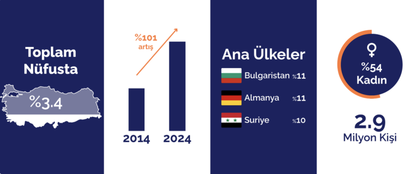 2014’e kıyasla 2024'te Türkiye’nin yurt dışı doğumlu nüfusu %101 oranında arttı, yani son on yılda yaklaşık iki katına çıkmış oldu.