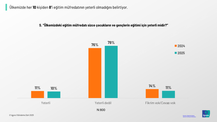 Ipsos’un 2025 verilerine dayanan araştırmaları, vatandaşların büyük çoğunluğunun mevcut eğitimden ve müfredattan memnun olmadığını ortaya koyuyor. Eğitimde reform ihtiyacını ve geleceğin rekabetçi dünyasında çocukların yetkinlik kazanabilmesi için atılması gereken adımları bir kez daha gündeme taşıyan bulgular, Türkiye’nin 30 ülke arasında eğitim kalitesine en eleştirel yaklaşan ülkelerden biri olduğunu gösteriyor.