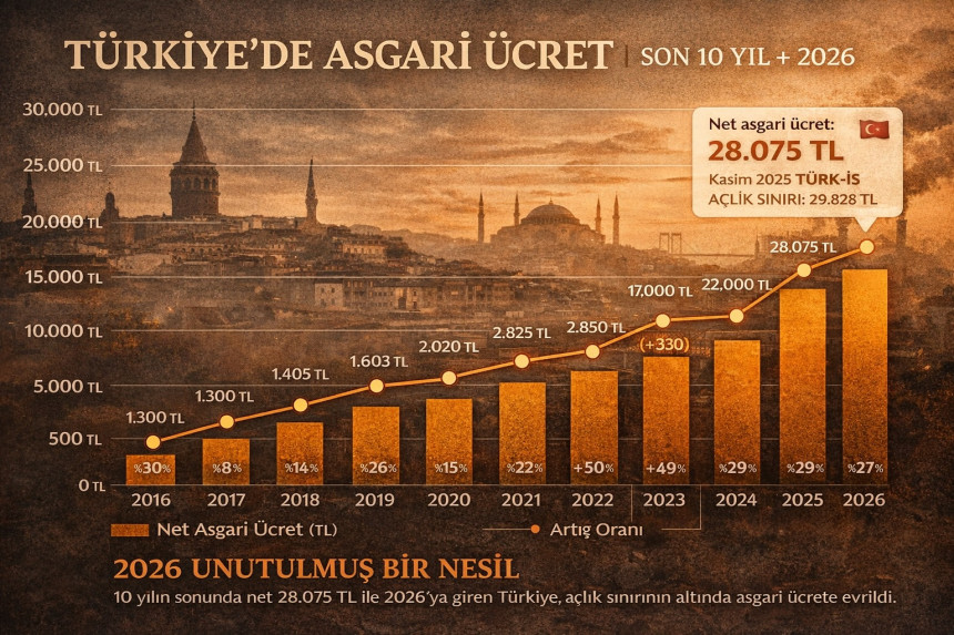 Son on yılda asgari ücret nominal olarak hızla büyüdü. Ancak aynı dönemde gıda, barınma ve enerji fiyatlarındaki artış oranı çok daha yüksek seyretti. 2015–2025 döneminde: