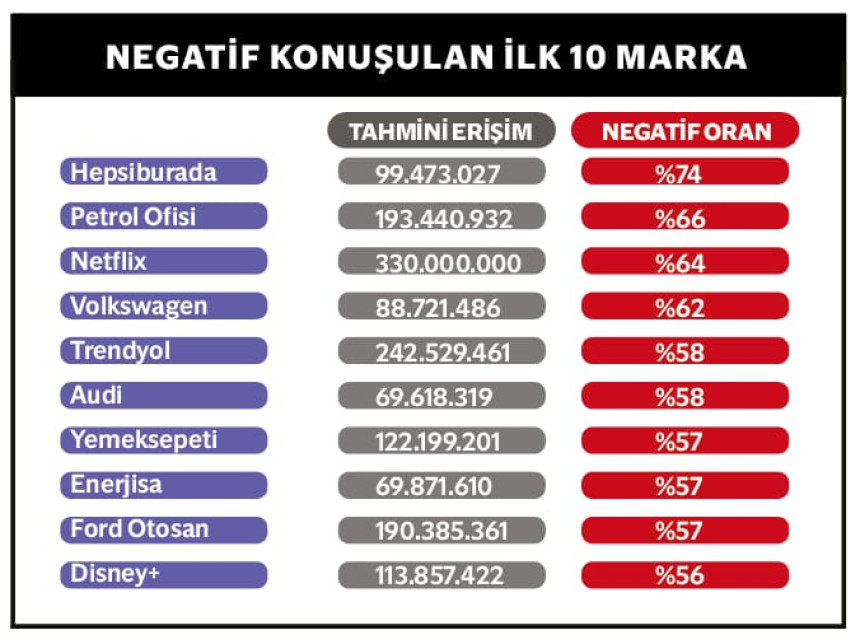 Geçen yıl dijital mecrada en çok konuşulan markalar listesinde ilk onda olan üç marka; Yemeksepeti, Vodafone ve Disney+ ise bu sene listede şaşırtıcı bir şekilde geriledi.