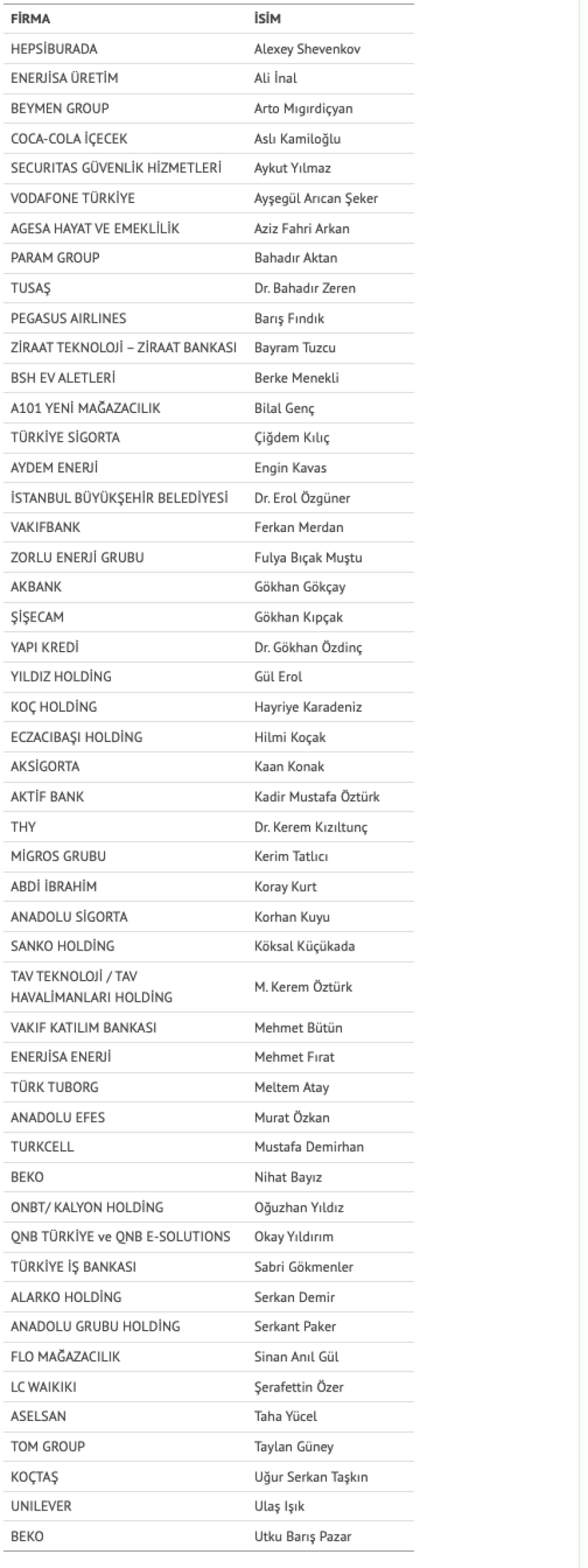 Sektör uzmanları ve akademisyenlerden oluşan danışma kurulu tarafından saptanan kriterler çerçevesinde, performanslarıyla dikkat çeken teknoloji liderleri, Türkiye’nin en önemli şirketlerinin dönüşüm vizyonuna katkıda bulunuyor. Son bir yıllık performansları ve yatırım yaptıkları yenilikçi teknolojilerle öne çıkan “En Etkin 50 Teknoloji Lideri” listesinde Eczacıbaşı Topluluğu, Şişecam, Türk Hava Yolları, Turkcell, Hepsiburada, Beymen Group ve Beko’nun yanı sıra TAV Havalimanları Holding, Enerjisa Enerji, Akbank gibi ulusal ve uluslararası ölçekte faaliyet gösteren şirketlerin teknoloji liderleri yer aldı. Vodafone Türkiye’den Ayşegül Arıcan Şeker, Coca Cola İçecek’ten Aslı Kamiloğlu, Koç Holding’den Hayriye Karadeniz, Yıldız Holding’ten Gül Erol ve Türk Tuborg’tan Meltem Atay, Zorlu Enerji Grubu’ndan Fulya Bıçak Muştu ve Türkiye Sigorta’dan Çiğdem Kılıç gibi kadın liderler ise %14’lük temsille, listede kadın liderlerin yükselişinin sembolü oldu.