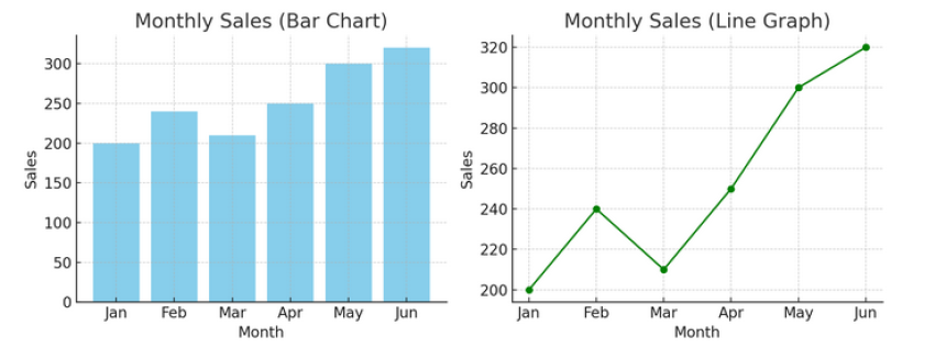 Aşağıda bir çubuk grafiği (solda) ve bir çizgi grafiği (sağda) örneğimiz var.