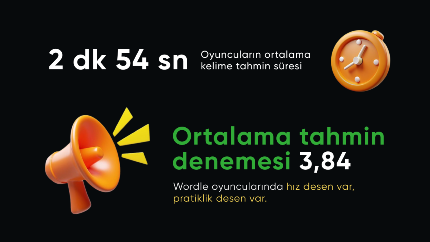Ortalama olarak bir kelimeyi çözmek 2 dakika 54 saniye sürüyor. Tahmin sayısıysa 3,84. Yani çoğu kişi henüz beşinci denemeye bile kalmadan kelimeyi yakalıyor. Hız var, dikkat var, sezgi var. Ve arada bir de sürprizler…
