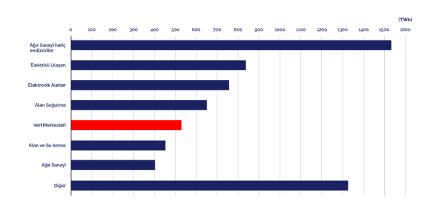 Bu senaryolar gerçekleşirse, veri merkezlerinin toplam elektrik tüketimi 2030’a kadar 945 TWh düzeyine ulaşarak, küresel elektrik talebinin yaklaşık yüzde 3’ünü tek başına sahiplenecek.